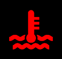 Kontrolka upozorňuje na přehřátí motoru nebo nedostatek chladicí kapaliny. Jestliže se rozsvítí, okamžitě zastavte, vypněte motor a po jeho vychladnutí zkontrolujte hladinu chladicí kapaliny. Pokud je třeba, doplňte obyčejnou vodou. V každém případě byste si to však měli namířit do servisu, kde vám kapalinu doplní do správného poměru.
